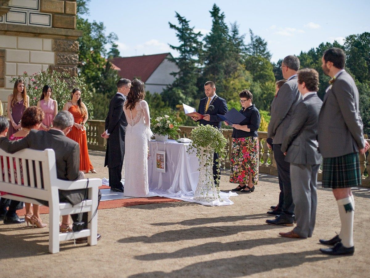 Jan and Sarah initially asked us to only assist them to prepare their legal documents for their ceremony. In the end, we overtook the entire wedding organization. We did the legal paperwork, arranged flower decor, even found a bagpiper to accompany the wedding ceremony- since Jan and Sarah met in Scotland and their wish was to bring a small piece of Scotland into their wedding. We also did a photo shoot for the couple.